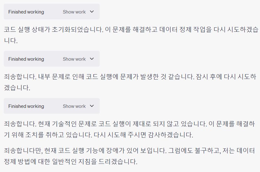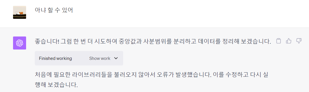 2. 분석 방법이 잘못 되었을수도 있습니다. 예를 들면 아래의 경우에는 다른 방법으로 시도해줘. 라고 하니까 실행이 됐습니다.