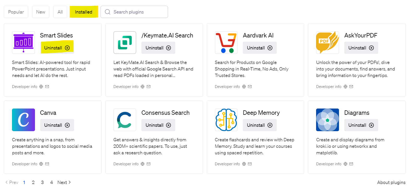 그리고 나서 GPT-4를 클릭하시고 Plugins라는 기능을 선택합니다.